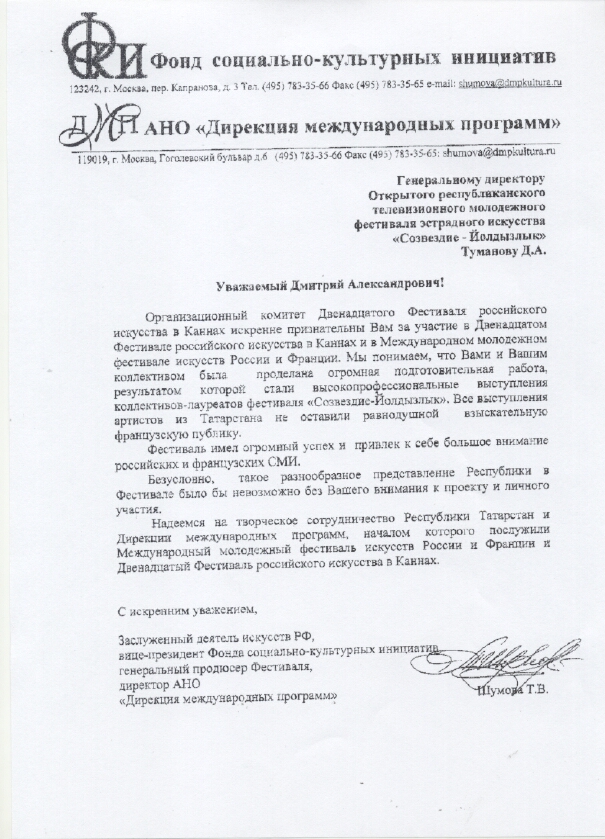 Благодарственное письмо