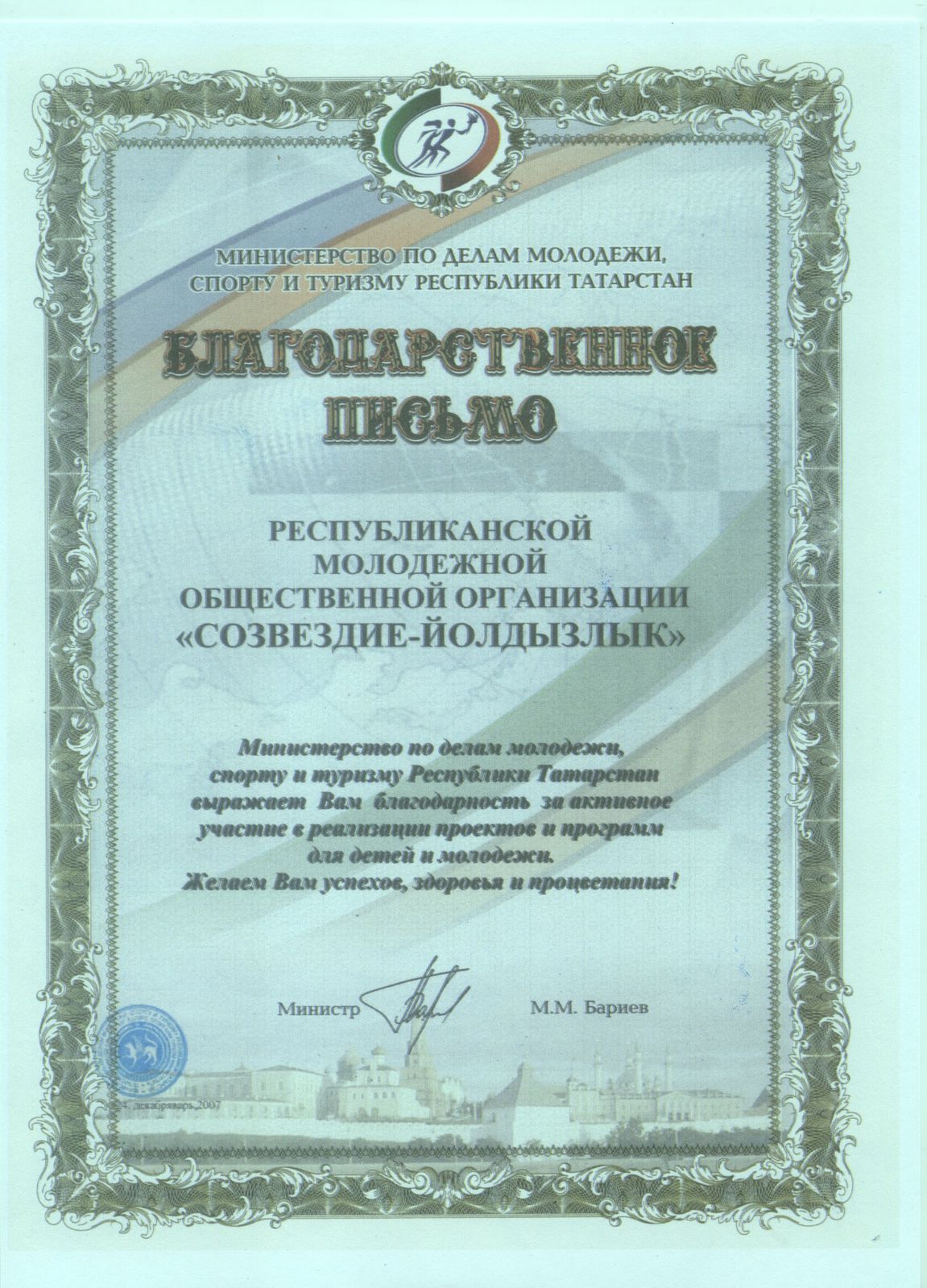 Благодарственное письмо (2007) (МДМСТ РТ)